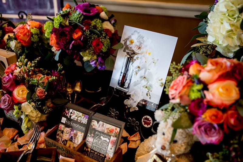 This Sunday, I got to set up a booth and meet some potential new clients at the Arrowhead Golf Club Bridal showcase. We were so thrilled to be exhibiting with creative geniuses such as Kio Kreations, Blend Beauty, and Lauren Housely of Ryan Alexander Events. My photos of mutual clients were featured on Kristen and Cynthia’s tables, and Kristen made a gorgeous floral box for us to put business cards in! I’d love to share some photos with you. I don’t want to share TOO much though, because we did a styled shoot after the show, and I want to save those gorgeous details for later!