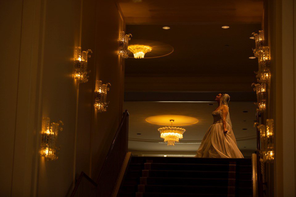 For this image, there is a MagMod MagGrid on a flash on a light stand, camera left, and on the same level as the Bride.