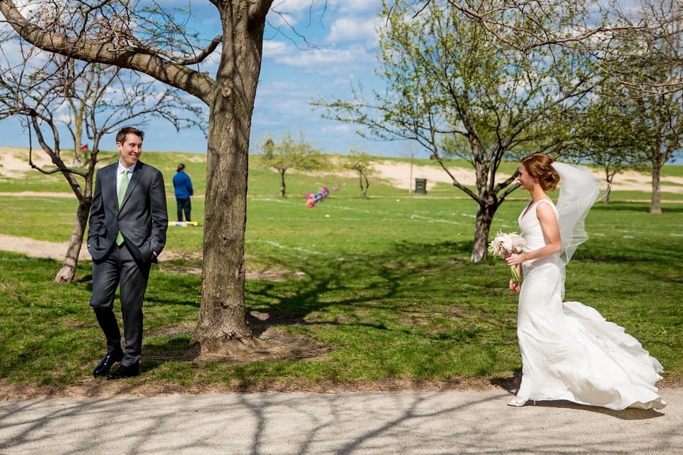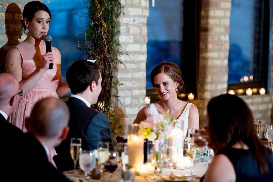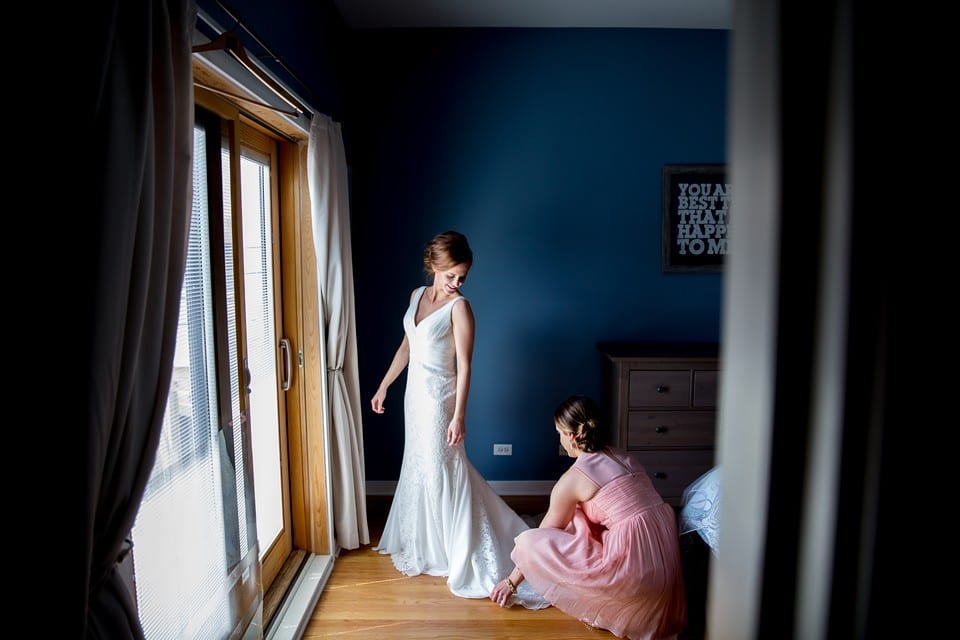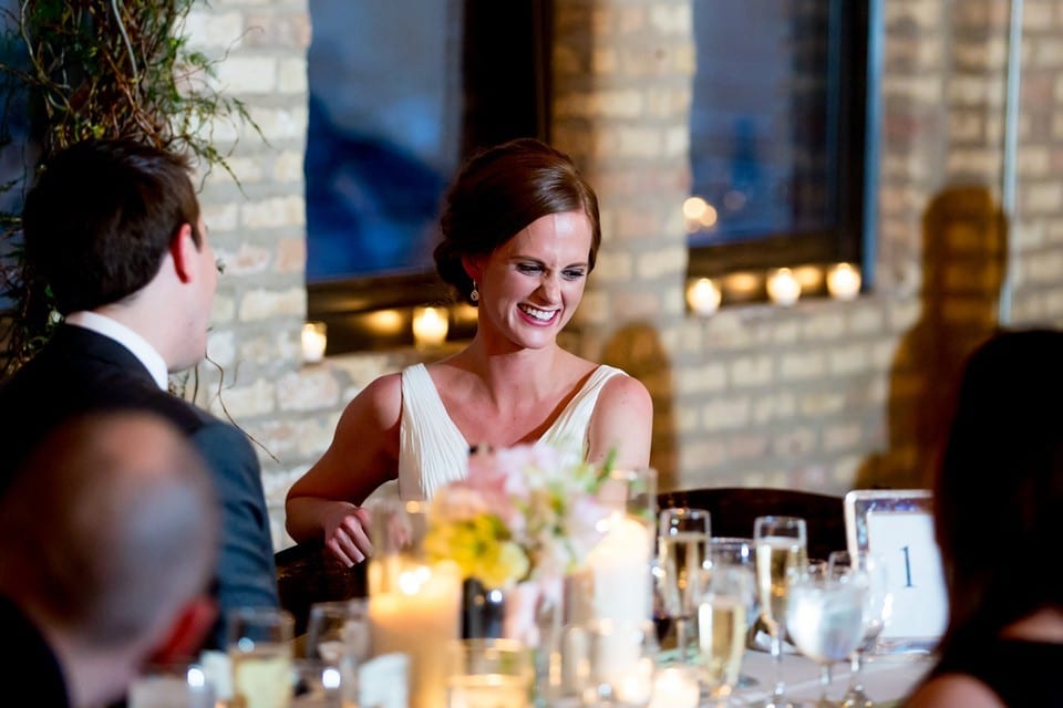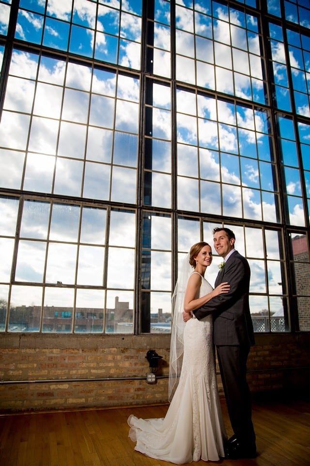 Megan and Kyle’s Wedding day was filled with blue skies, fluffy white clouds, kites, gorgeous light, and lovely decor at a historic former billboard factory in Chicago. Megan’s preparations at the beginning of the day were so joyful and fun! I think it’s evident in the photos how excited her Bridesmaids and Mom were for the big day to start. After a beautiful ceremony in the atrium of the building, guests were led to the loft to enjoy cocktails and dinner. Megan and Kyle’s Best Man and Maid of Honor gave wonderful, heartfelt speeches, and then it was back up to the atrium for dessert and dancing! Kristin from Toast and Jam DJs spun an energetic mix, and the Couple’s guests danced the night away. Before the photos, here are some words from the Couple!