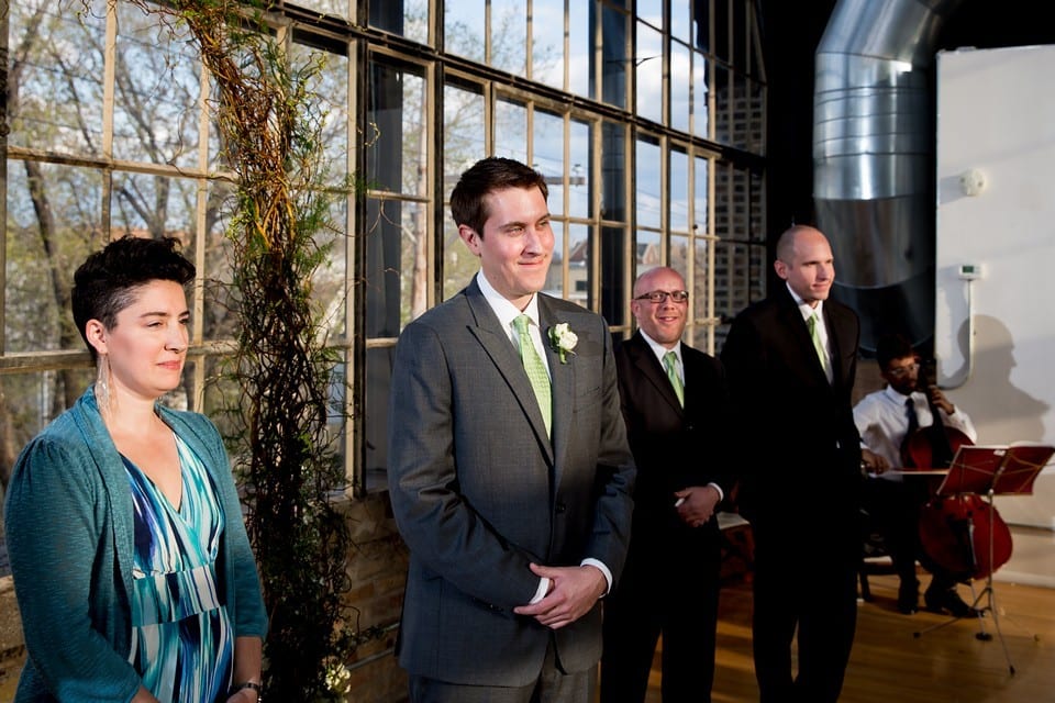 We loved the venue. We fell in love with all the windows in the atrium and the wood beams and exposed brick in the loft. We wanted all the décor to play off of that urban, rustic feel.