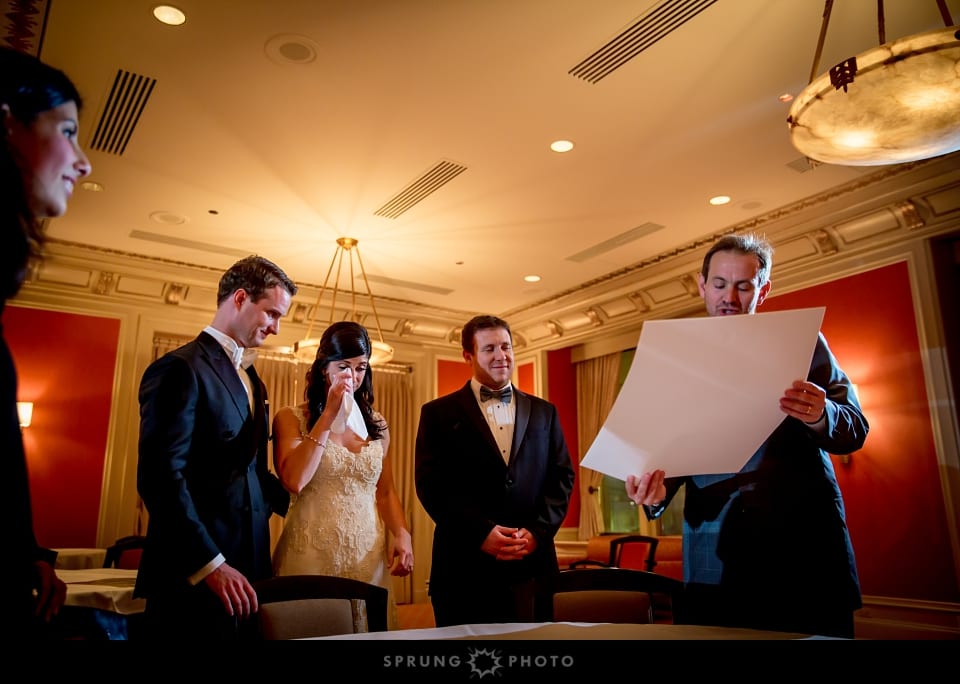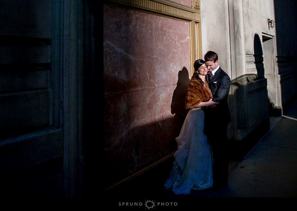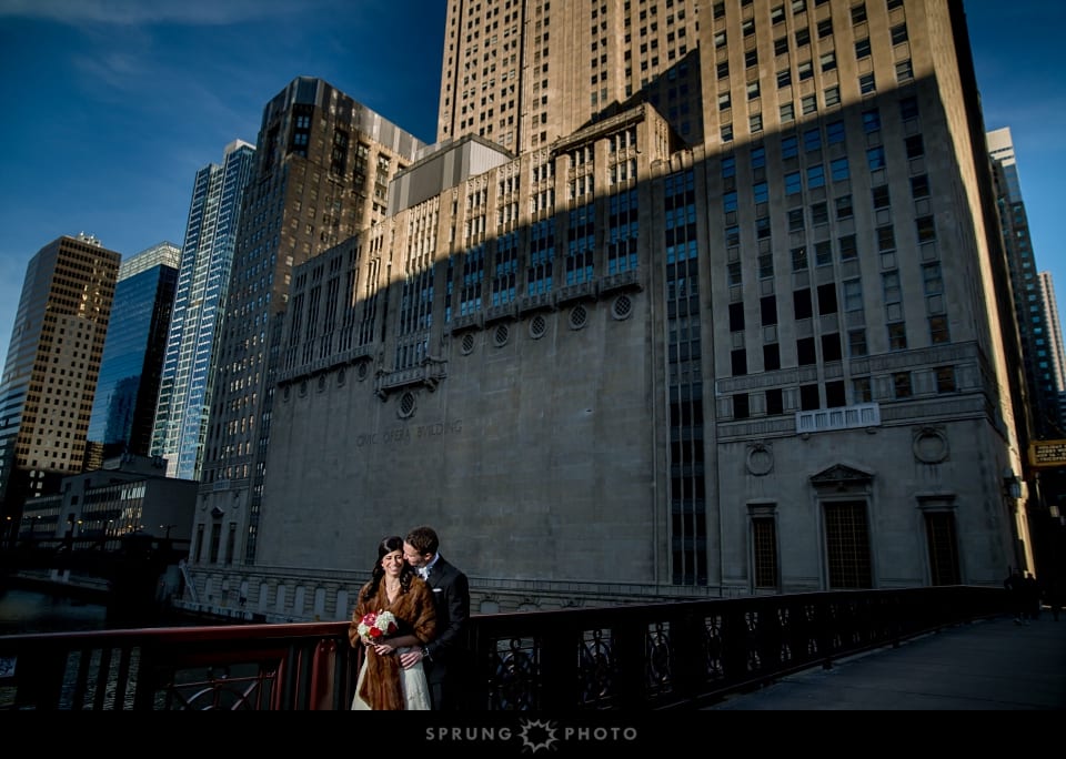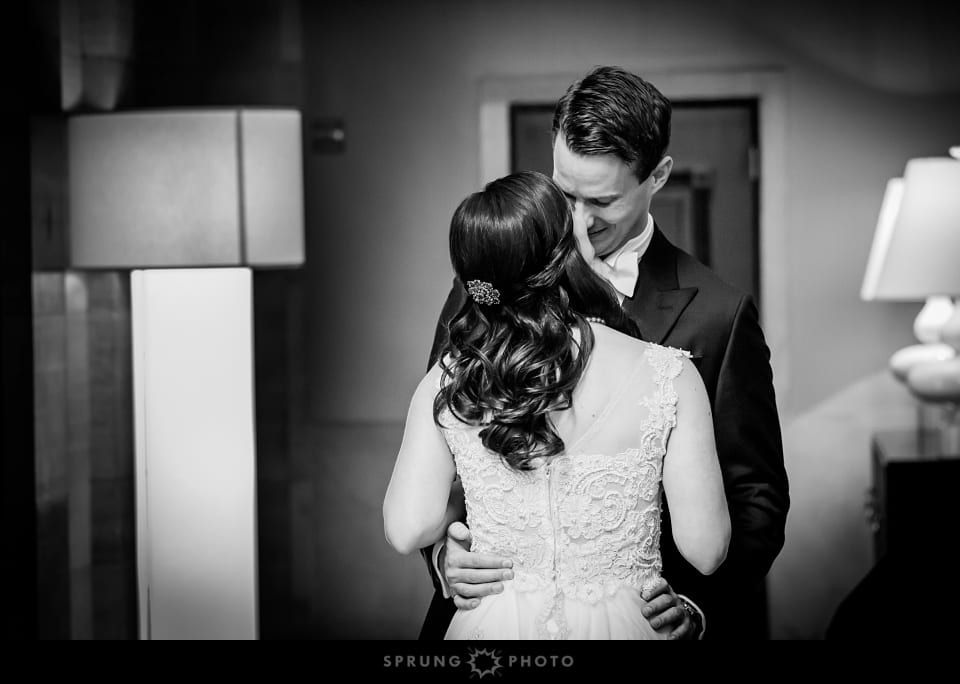 We got married in December in Chicago, so all signs pointed to horrible weather – luckily, we had another day of blue skies and sun! We woke up and got ready separately, anxiously awaiting our “first look”. I had so many friends and family in my suite, it felt more like a slumber party than anything else! We couldn’t wait to get everything started! Funnily, I cried before walking down the aisle, but not because I was scared to marry Andrew – only because I had messed up my hair putting on the veil! My mom called me a month later to make sure I was still happy with my decision because she didn’t know why I was crying…oops!