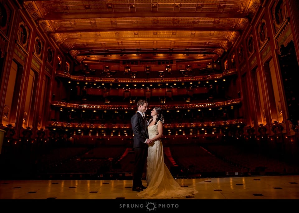 Have we got a treat for you today! Melissa and Andrew had a GORGEOUS Wedding day. You really can’t beat the setting of the Civic Opera in Chicago. When you combine the amazing setting with the adorable glances Melissa was giving Andrew all night, Andrew’s impeccable tux, the unique and beautiful decor, the perfect Ceremony, and the super fun reception, you get gold! Enjoy the SUPER q&a with the Couple, and then check out some of my favorite shots of the day!