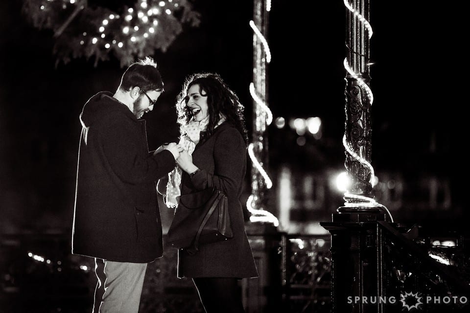 When my friend Rob said he was going to pop the question to his beautiful girlfriend Evangeline on Christmas Eve, I knew I had to be there to capture it. Rob had mentioned wanting to capture a silhouette of the two of them against the holiday lights at a Gazebo near their home, and that set the wheels in motion. The results are below. Congrats to Rob and Evangeline!!!