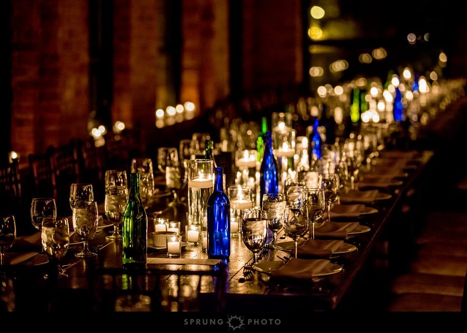 Sami and Andy: We love Chicago, we love industrial spaces, and we wanted our wedding to showcase the beautiful architecture of City View Lofts. We went with candles. 700 of them to be precise and let those be the main decor. We gifted them to friends of our who will be married outside this summer and it’ll be nice to see how it translates into a completely different environment.
